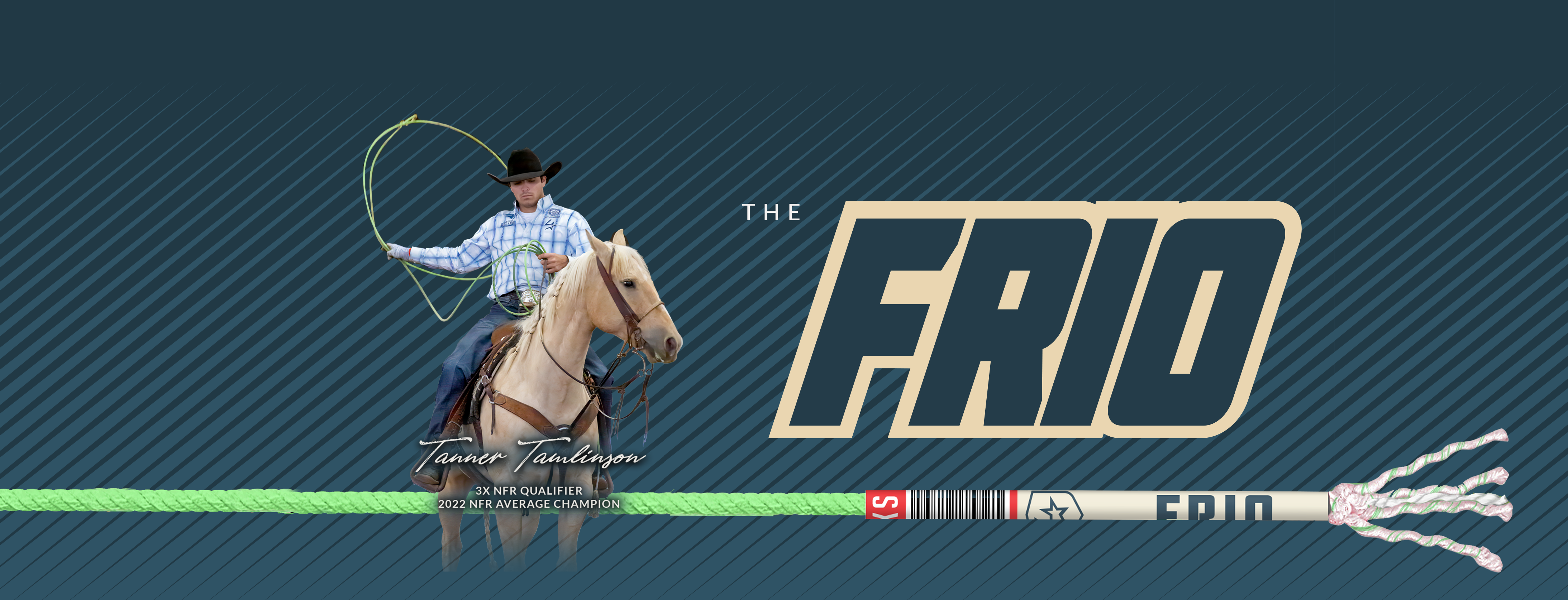 The Frio head rope is our new four-strand nylon-poly blend with our counterbalanced core. Fluorescent green and small in diameter for a fast feel, The Frio heel rope boasts an even weight and smoothness that makes it adaptable to all weather conditions. The Frio is the rope of choice for Lone Star pros Tanner Tomlinson and Manny Egusquiza.