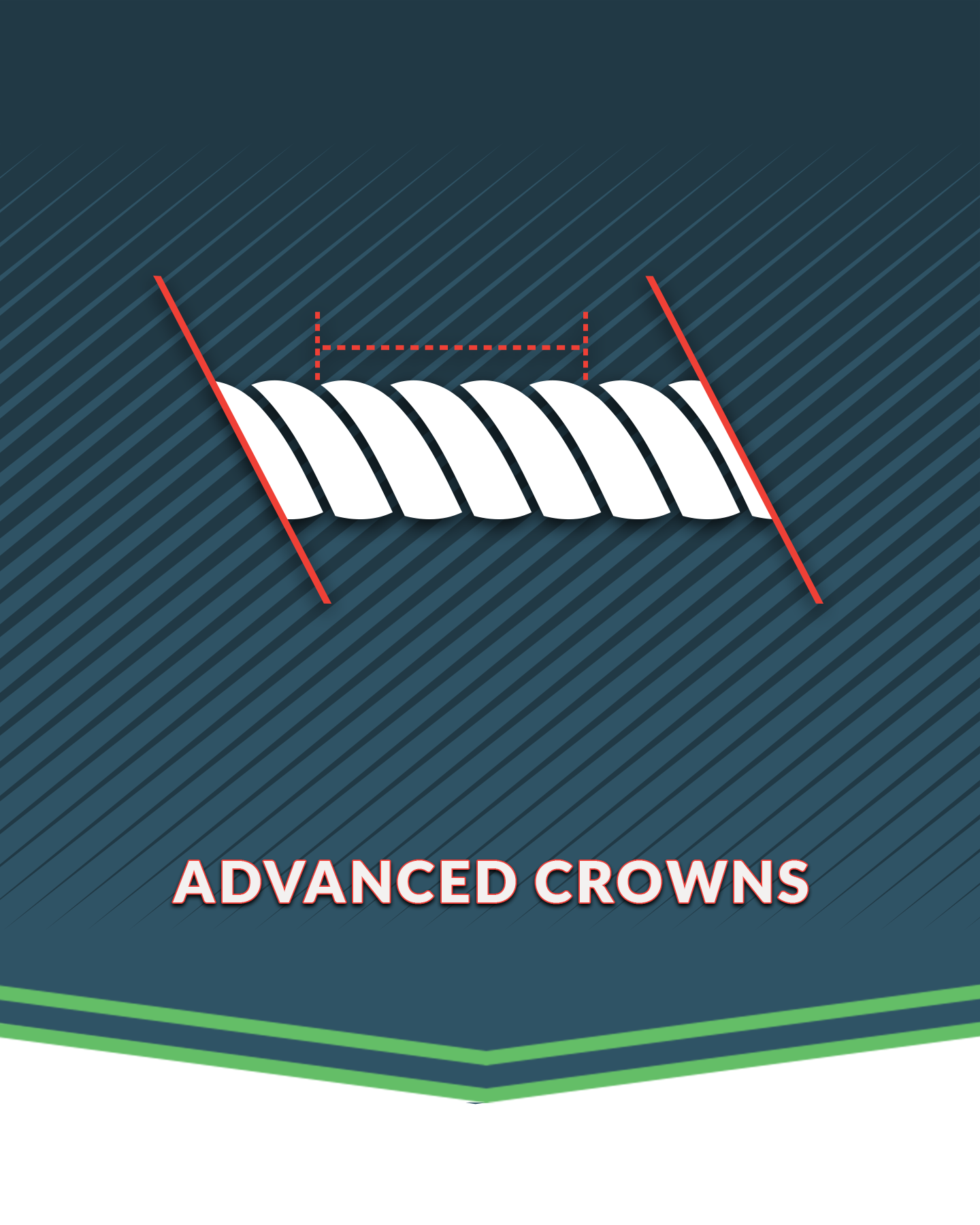 We combine textured shell fibers around precisely wound cordage to provide defined crowns & improve horn grip.