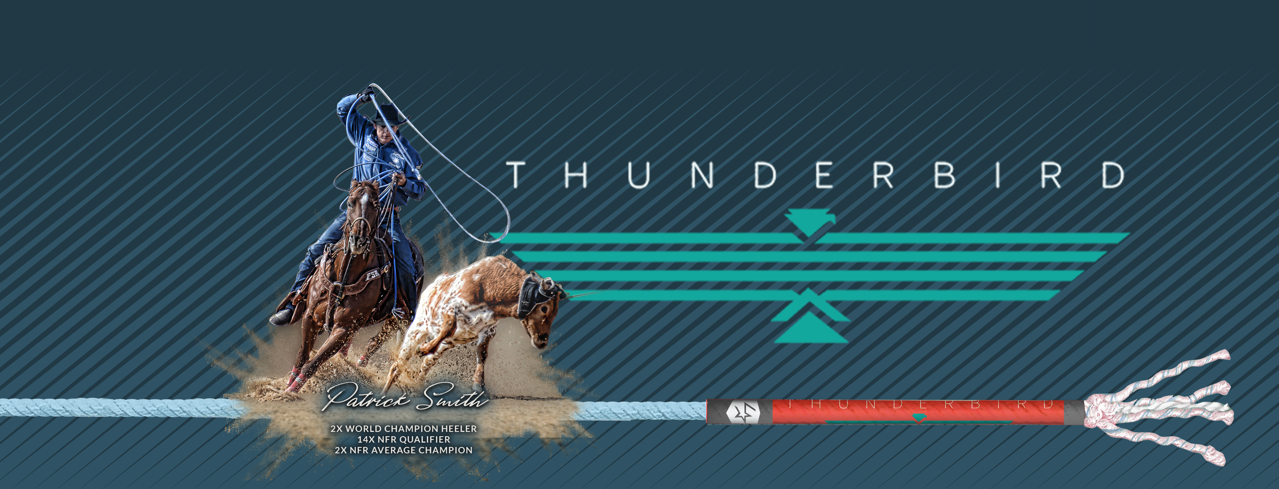 The Lone Star Thunderbird Head Rope is a uniquely engineered 4-strand rope, with a nylon/poly blend, combined with a multi-directional, double-twisted core, to allow the center core to counterbalance the rope as a whole. A collaboration with NFR legend Patrick Smith, The Thunderbird team rope has a very even weight to it and is adaptive in all weather elements.